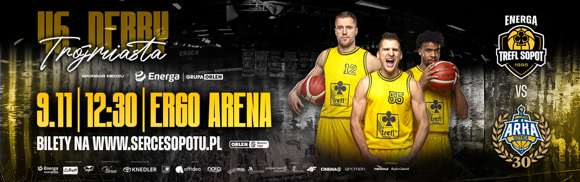 Derby, czyli mecz, którego nie można przegapić! W niedzielę 9 listopada o 12:30 po raz 46. koszykarze z Sopotu i Gdyni powalczą o prymat w Trójmieście. Żółto-czarni postarają się przedłużyć świetną serię derbową, która w tym momencie wynosi siedem zwycięstw z rzędu. Głośnym dopingiem w ERGO ARENIE pomóżmy im to zrobić!